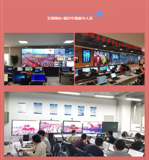 56門禮炮、70鳴響,震徹寰宇,在這場超燃閱兵式直播背后,艾策作為大視頻保障領(lǐng)先者,有這么一群艾策人放棄假期依然堅守在工作崗位上,用實際行動向偉大祖國建國70周年獻(xiàn)禮。節(jié)前,艾策通訊即發(fā)出通知,就新中國成立70周年大慶期間各集團(tuán)業(yè)務(wù)安全穩(wěn)定運(yùn)行工作進(jìn)行了詳細(xì)安排部署,明確重點保障工作任務(wù),同時成立由項目專職值守人員和后端研發(fā)專家聯(lián)合組建的艾策專項保障團(tuán)隊,全力確保在國慶期間以更優(yōu)質(zhì)的服務(wù)提供更全面的支撐保障工作。