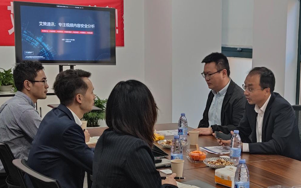 董事長(zhǎng)王勇首先對(duì)吳總一行的到來表示熱烈歡迎,在產(chǎn)品演示區(qū)觀看了部分產(chǎn)品的功能演示后,隨后在會(huì)議室,王總詳細(xì)向吳總一行介紹了公司的產(chǎn)品和服務(wù)、發(fā)展歷程、研發(fā)方向以及行業(yè)發(fā)展?fàn)顩r等內(nèi)容。王總表示:艾策通訊一直以來高度重視技術(shù)創(chuàng)新,是一家技術(shù)驅(qū)動(dòng)型科技公司,多年來深耕視頻安全分析和視頻創(chuàng)新,專注視頻內(nèi)容安全、內(nèi)容版權(quán)、內(nèi)容質(zhì)量、內(nèi)容防篡改、內(nèi)容防泄密、內(nèi)容播控、內(nèi)容監(jiān)管等產(chǎn)品研發(fā)、銷售、運(yùn)營及服務(wù)。目前公司在視頻質(zhì)量和安全保障、版權(quán)保護(hù)、內(nèi)容可管可控等方面表現(xiàn)突出,前景廣泛,正處于創(chuàng)新成果走向市場(chǎng)的關(guān)鍵時(shí)期。