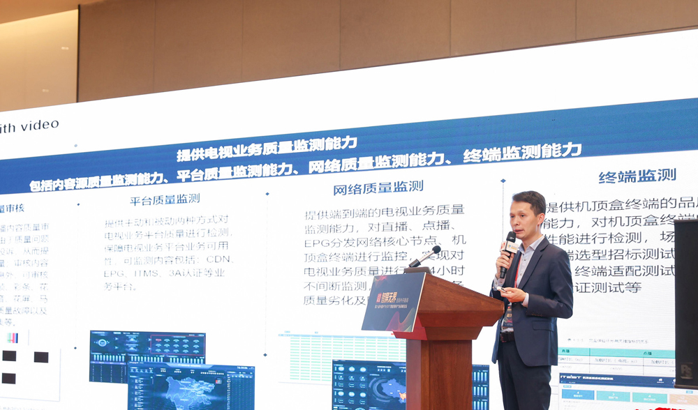 王總的主題演講是在12日下午2時許的“IPTV+論壇”上,針對智慧大屏服務生態的打造,數名與會嘉賓從內容、數據、垂直生態等角度出發,分享了產業破局的不同路徑;在“運營+論壇”,圍繞從流量到留量、產業的精細化運營等熱點話題,嘉賓們分享了各自的價值運營新舉措;在“商業+論壇”,基于大屏商業新藍圖的構建這一核心議題,嘉賓們給出了不同的解決方案和實戰案例。而公司王總聚焦于監播和運營,通過長約30分鐘的演講,和與會嘉賓一起分享了自己的見解。