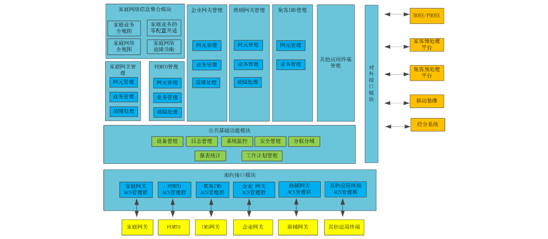 所有業(yè)務(wù)類型均以插件方式管理 支持新類型設(shè)備,系統(tǒng)只需上傳插件,無需任何重啟服務(wù)操作,功能擴展性強 平臺能管理家庭網(wǎng)關(guān)、機頂盒、IMS網(wǎng)關(guān)等。