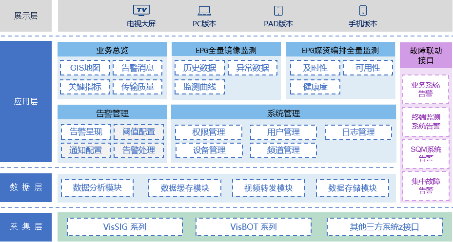 四層架構(gòu)設(shè)計(jì):采集層、數(shù)據(jù)層、應(yīng)用層、展示層